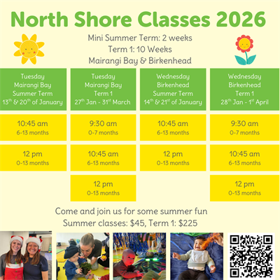 Classes running in Mairangi Bay on Tuesdays and Birkenhead on Wednesdays.