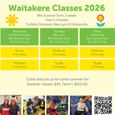 Classes running in Te Atatu Peninsula on Wednesdays, New Lynn on Thursdays and Hobsonville on Fridays.